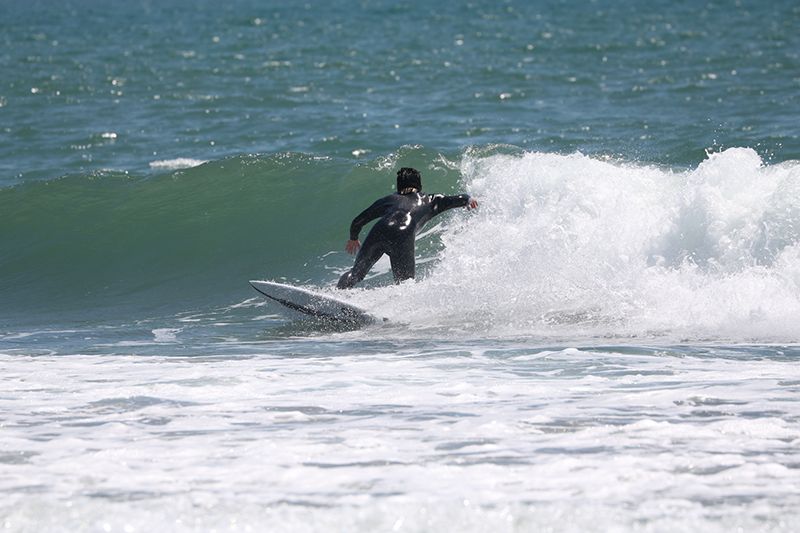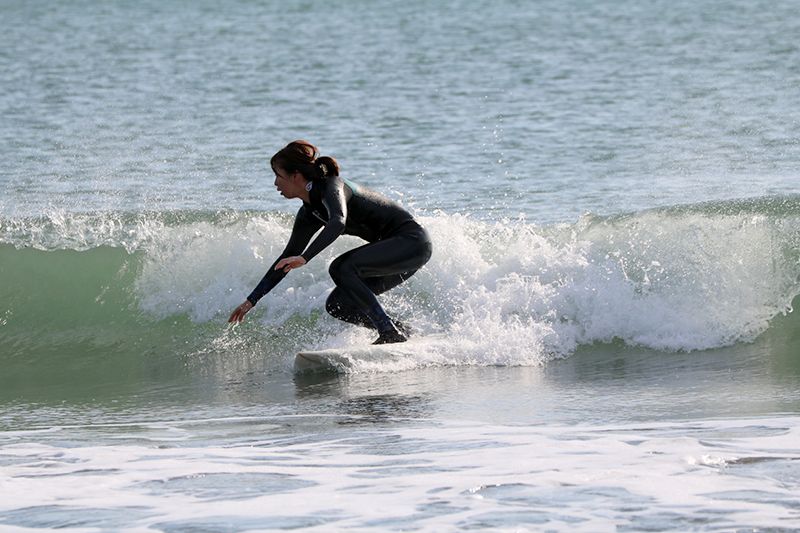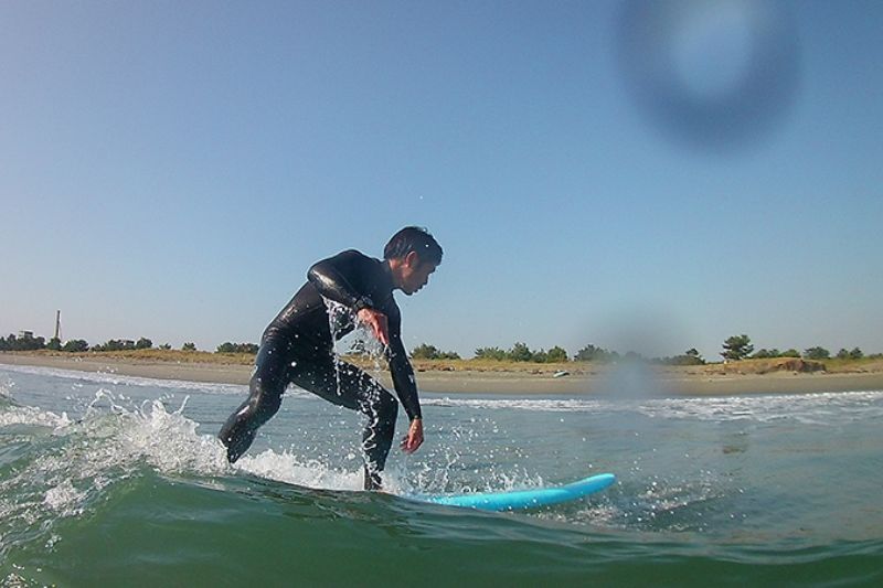 インストラクターと一緒に海に入りアドバイスを受けながらサーフィン
