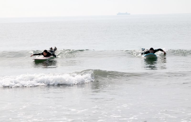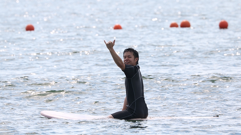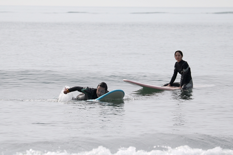インストラクターのアドバイスや補助で波に乗りましょう。